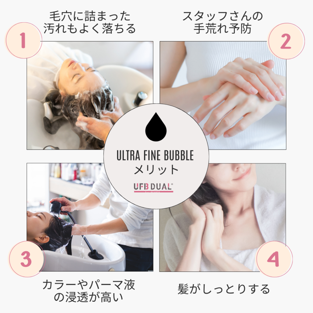 サロンまるごとウルトラファインバブルにすれば、お客様にも、美容師さんにもより満足度の高いサロンに変身!