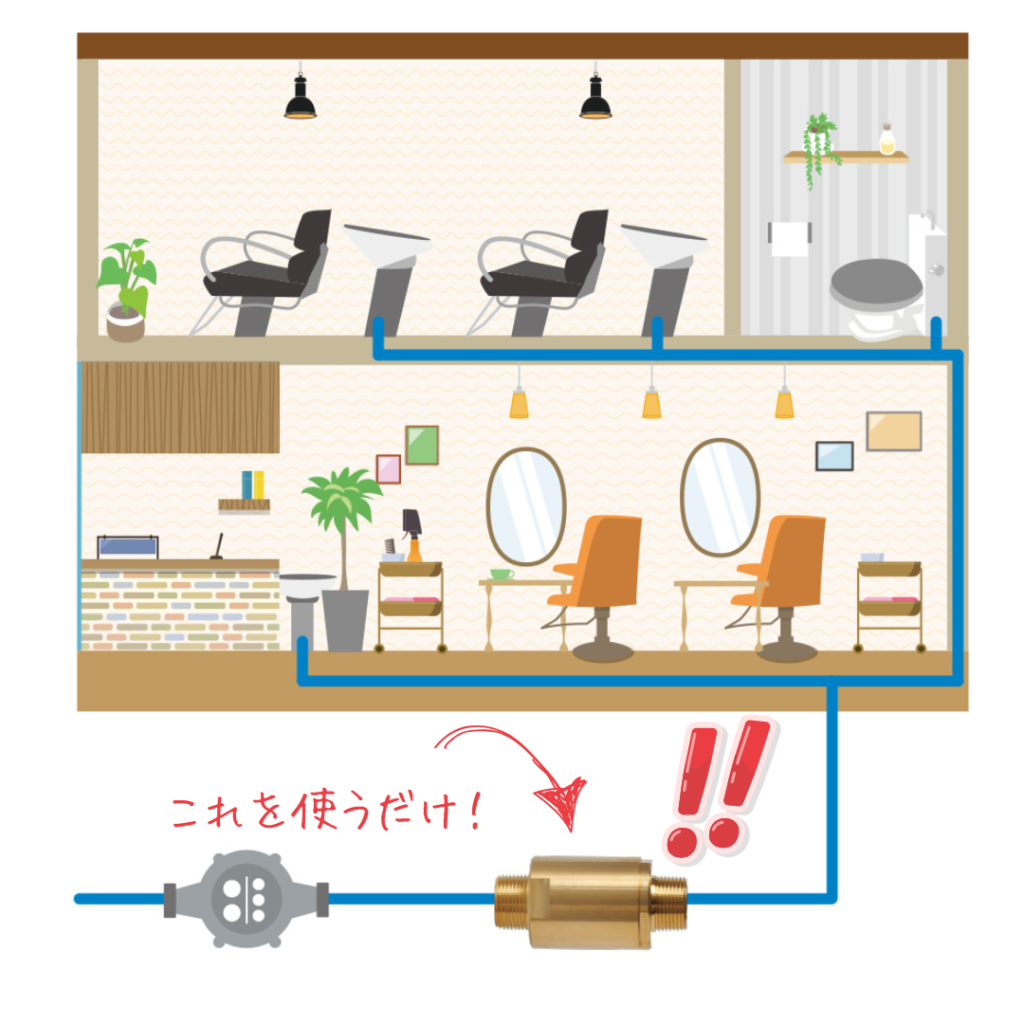 しかし、「UFB DUAL」だと手の平サイズのノズルだけで、サロンまるごとウルトラファインバブル水化できちゃいます!シャンプー台はもちろん、シンクやトイレも。